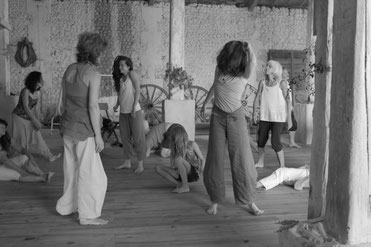 Dans ce mouvement libre et intuitif, nous explorons des rythmes différents, pour se déposer avec la terre, nourrir sa vitalité avec le feu, fluidifier ses tensions avec l’eau, exprimer sa liberté d’être avec l’air et accueillir le mystère de la Vie avec le subtil…